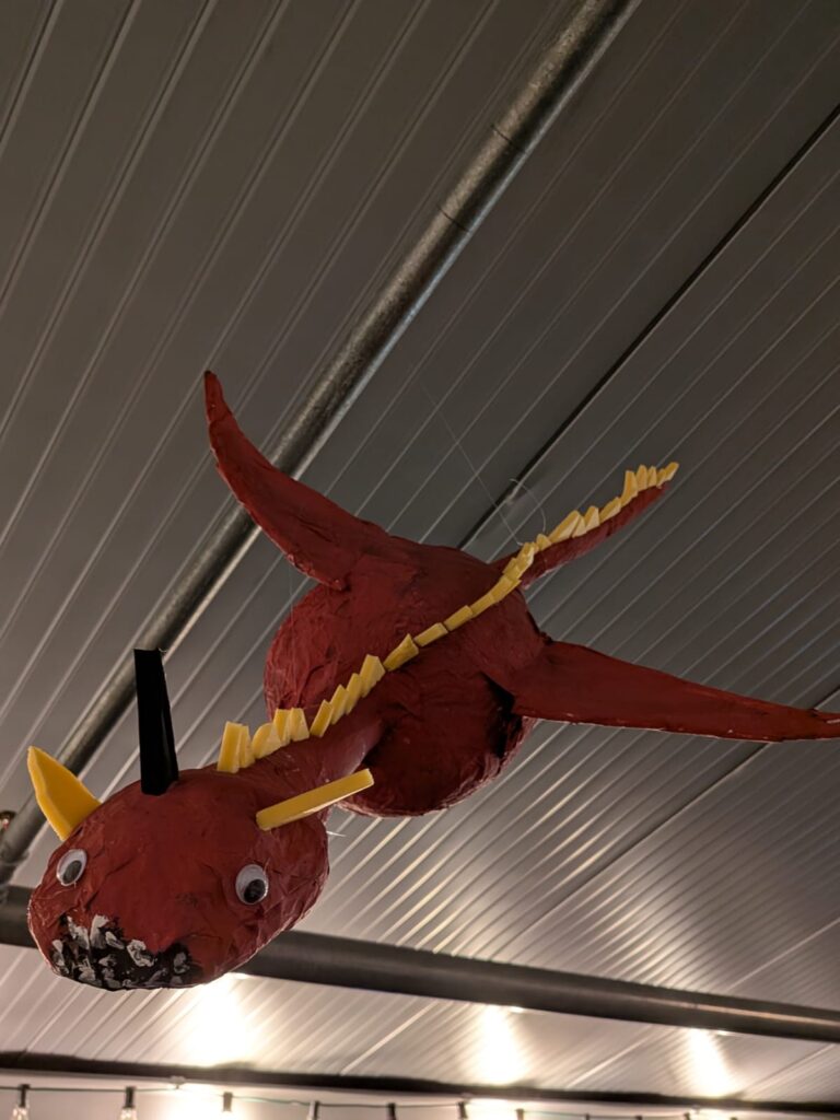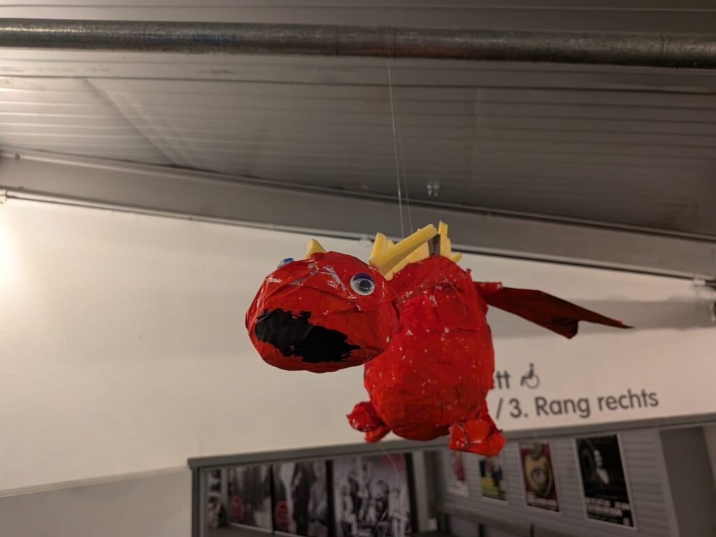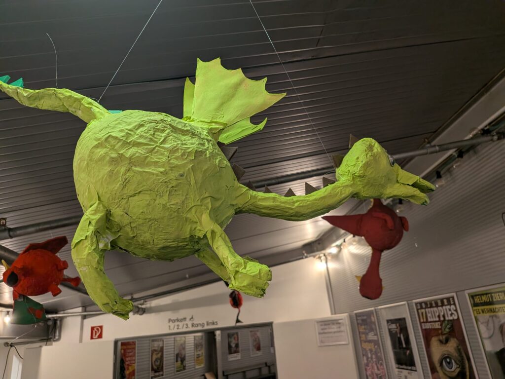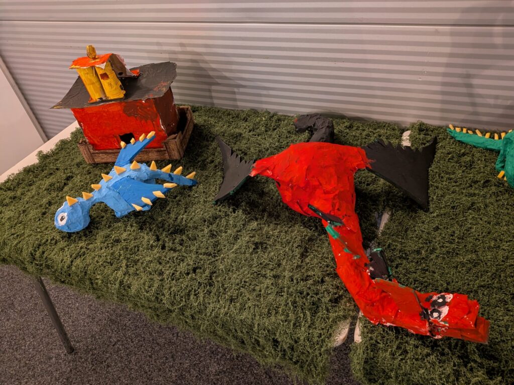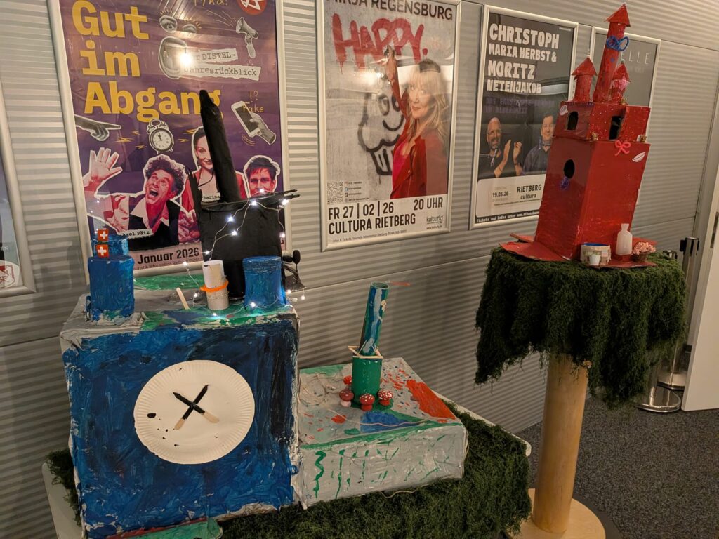 Die Kinder der Klassen 3a und 3b haben im Kunstunterricht in Gruppenarbeit Märchenschlösser und Drachen gebaut. Die Kunstwerke wurden vom 29.11. bis zum 14.12.2025 im Foyer der Culture während des Musicals „Shrek“ ausgestellt.