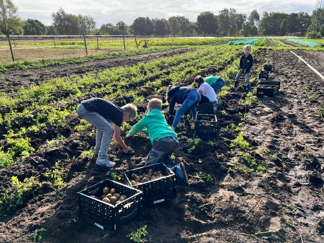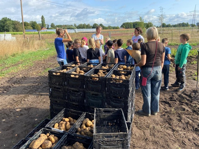 In der Praxisphase durfte jede Schulklasse gemeinsam Kartoffeln ausgraben und jedes Kind durfte natürlich eine ganze Tüte mit selbst geernteten Kartoffeln mit nach Hause nehmen.
