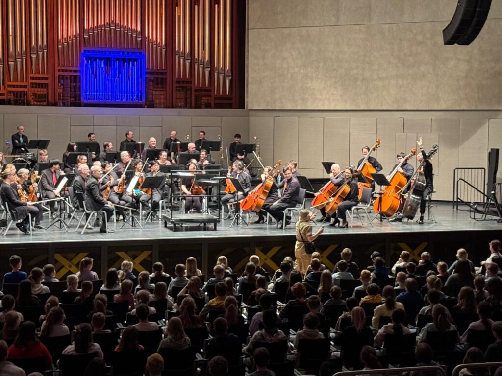 Am Montag, den 09. März sind die Schülerinnen und Schüler der 3. und 4. Klassen nach dem Frühstück gemeinsam mit dem Bus zur Stadthalle Gütersloh gefahren. Dann sind alle Schüler und Lehrer gemeinsam in den Konzertsaal gegangen. Alle haben ihre Plätze eingenommen. Kurz danach ging es schon los. Ein Forscher ist auf die Bühne gekommen und hat erzählt, dass er Vogelstimmen aufnehmen möchte. Dann durften die Schülerinnen und Schüler die Dirigentin rufen. Das Orchester hat nun die Wachtel, die Nachtigall und den Kuckuck nachgemacht. Das Huhn haben die Schülerinnen und Schüler und die Musiker zusammen nachgemacht. Die Schüler haben gesungen und das Orchester hat gespielt. Danach hat das Orchester wieder gespielt und die Schüler haben zum Kükenballett getanzt. Das nächste Lied hatte mit einer Katze zu tun. Die Töne haben sich wie ein Miauen angehört. Am Ende wurde das Kuckuckslied noch einmal wiederholt. Anschließend sind alle Schülerinnen und Schüler aus dem Saal zu den Bussen gestürmt und wurden zu ihren Schulen zurückgebracht. Es waren zwei musikalisch lehrreiche Schulstunden. Gesponsert wurde die Busfahrt von den Fördervereinen unserer Schule. Den Eintritt ins Orchester haben die Eltern bezahlt.